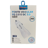 FONTE VEICULAR KINGO 38W USB + TIPE-C C-308